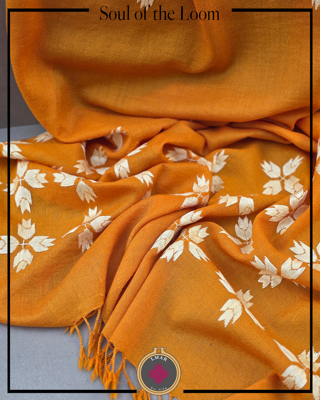 This exquisite hand-woven shawl from Swat, Pakistan, features intricate hand embroidery and traditional block print, blending timeless craftsmanship with contemporary style. The soft, breathable fabric provides both warmth and comfort, while the detailed embroidery and block print add a luxurious touch, making it a perfect accessory for any occasion.