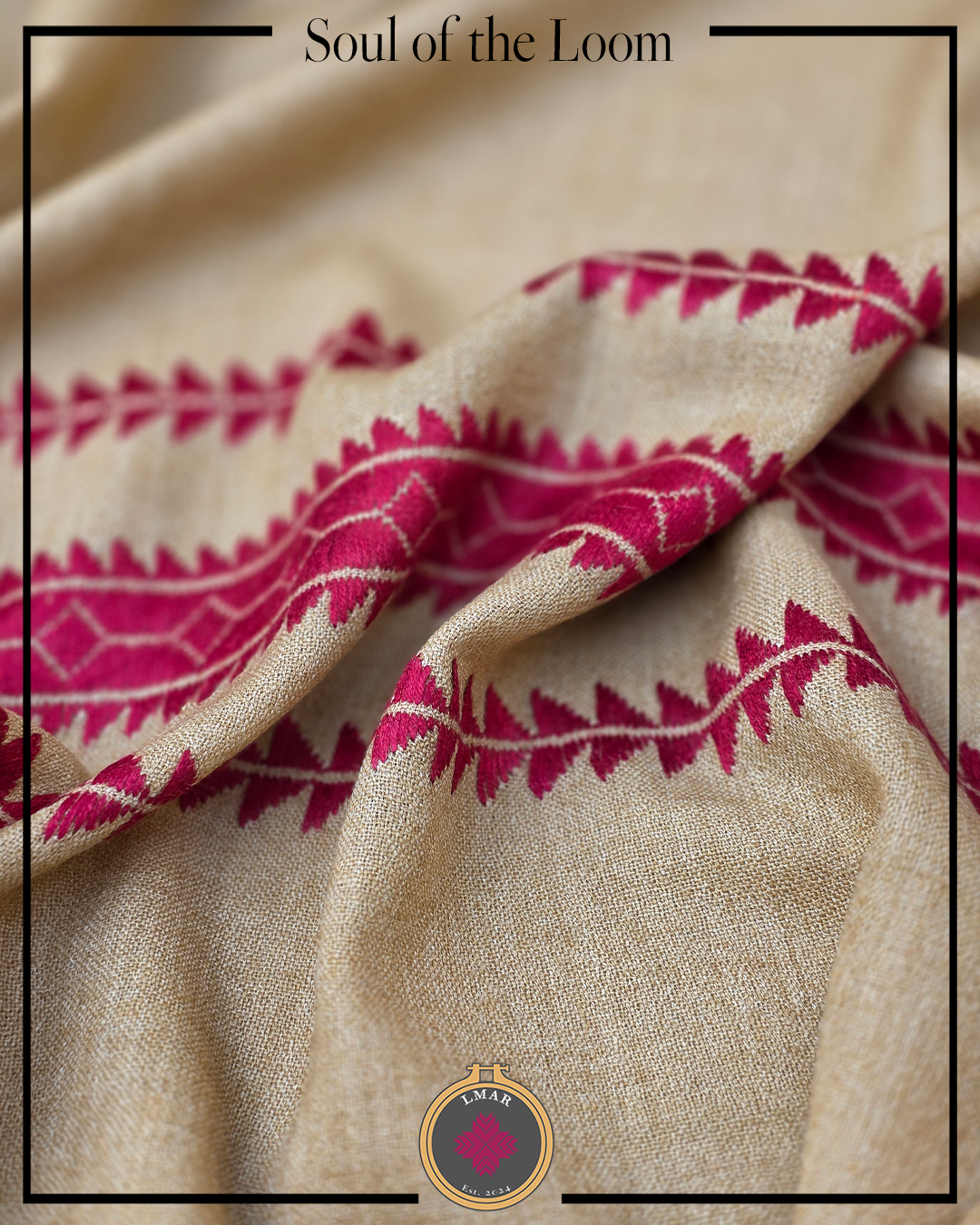 From Swat, Pakistan, this stunning hand-woven shawl features intricate hand embroidery, embodying the richness of traditional craftsmanship. Its soft, breathable material ensures comfort, while the luxurious embroidery makes it an ideal accessory for any wardrobe.