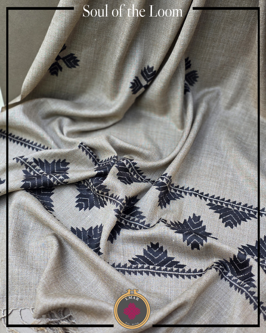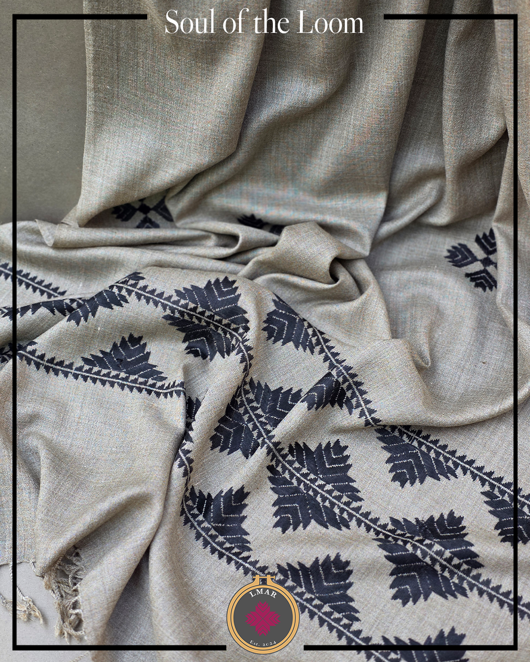 From Swat, Pakistan, this stunning hand-woven shawl features intricate hand embroidery, embodying the richness of traditional craftsmanship. Its soft, breathable material ensures comfort, while the luxurious embroidery makes it an ideal accessory for any wardrobe.