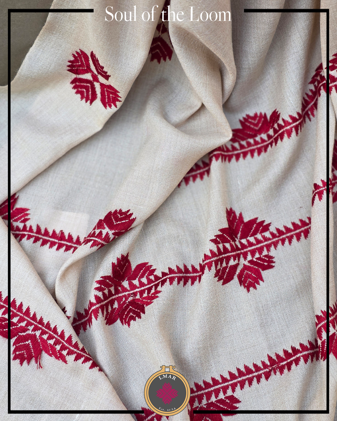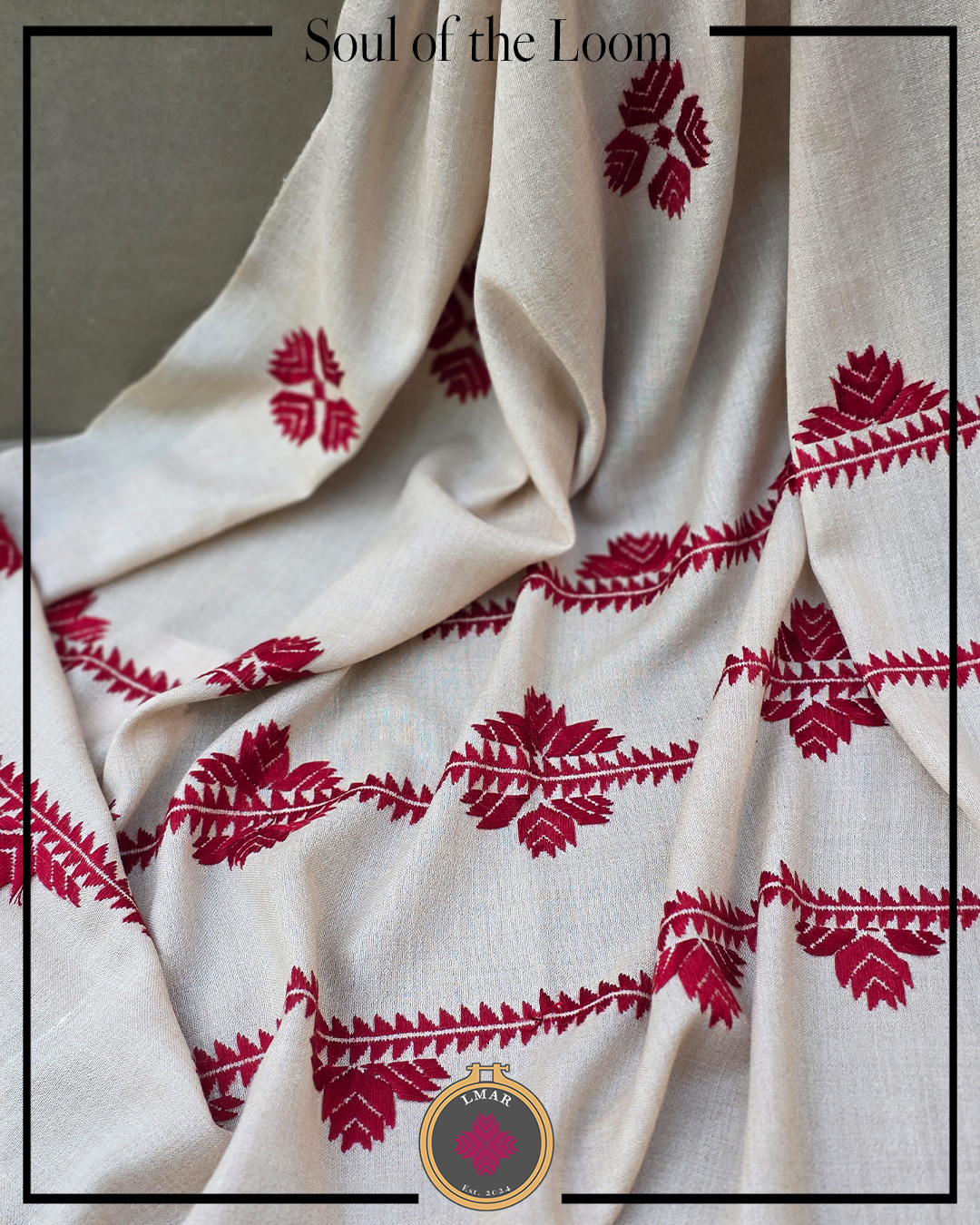 From Swat, Pakistan, this stunning hand-woven shawl features intricate hand embroidery, embodying the richness of traditional craftsmanship. Its soft, breathable material ensures comfort, while the luxurious embroidery makes it an ideal accessory for any wardrobe.