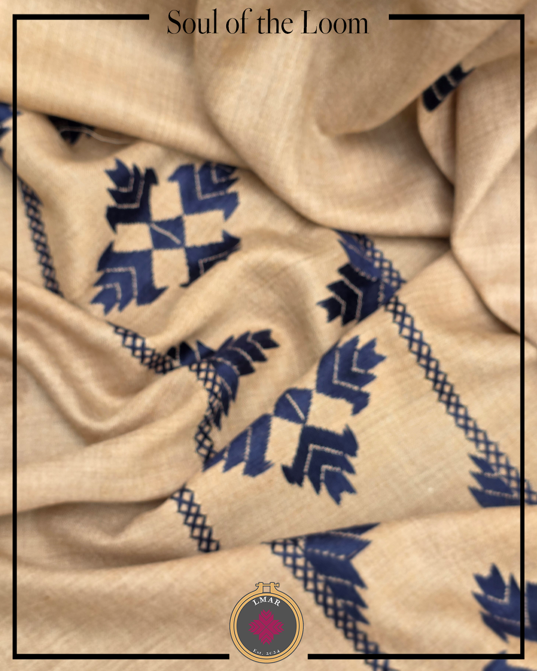 From Swat, Pakistan, this stunning hand-woven shawl features intricate hand embroidery, embodying the richness of traditional craftsmanship. Its soft, breathable material ensures comfort, while the luxurious embroidery makes it an ideal accessory for any wardrobe.