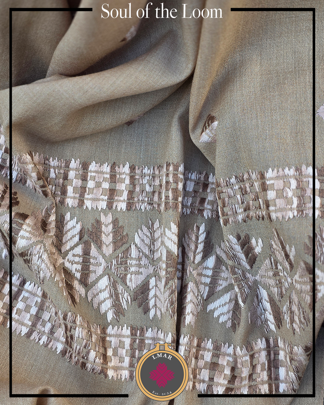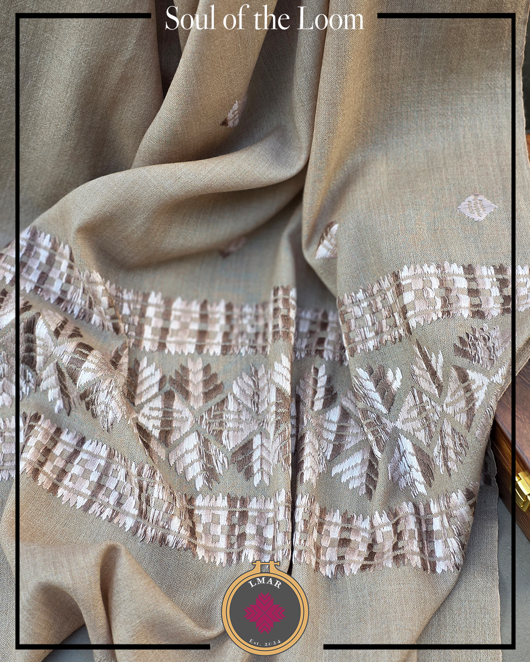From Swat, Pakistan, this stunning hand-woven shawl features intricate hand embroidery, embodying the richness of traditional craftsmanship. Its soft, breathable material ensures comfort, while the luxurious embroidery makes it an ideal accessory for any wardrobe.