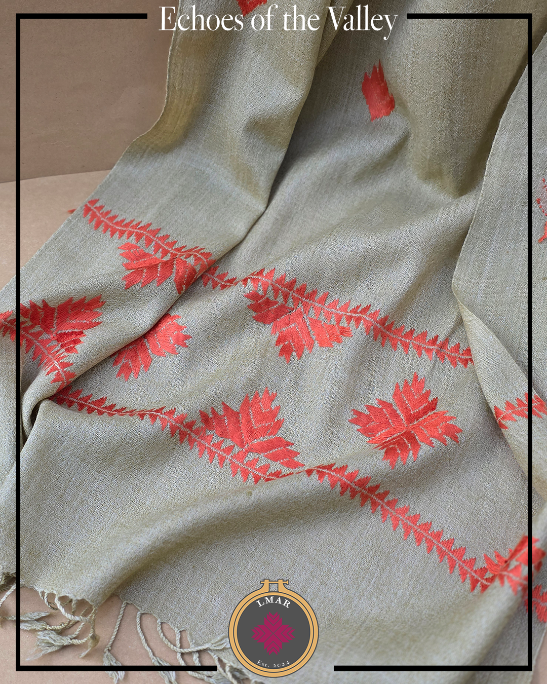 Experience the fusion of tradition and elegance with this hand-woven stole, featuring detailed hand embroidery. The breathable, soft fabric keeps you warm and stylish, while the intricate design adds a beautiful, artisanal element, making it ideal for elevating any ensemble.
