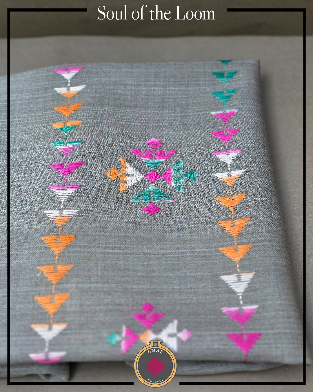 Colour: Grey Base with Multicolor Embroidery