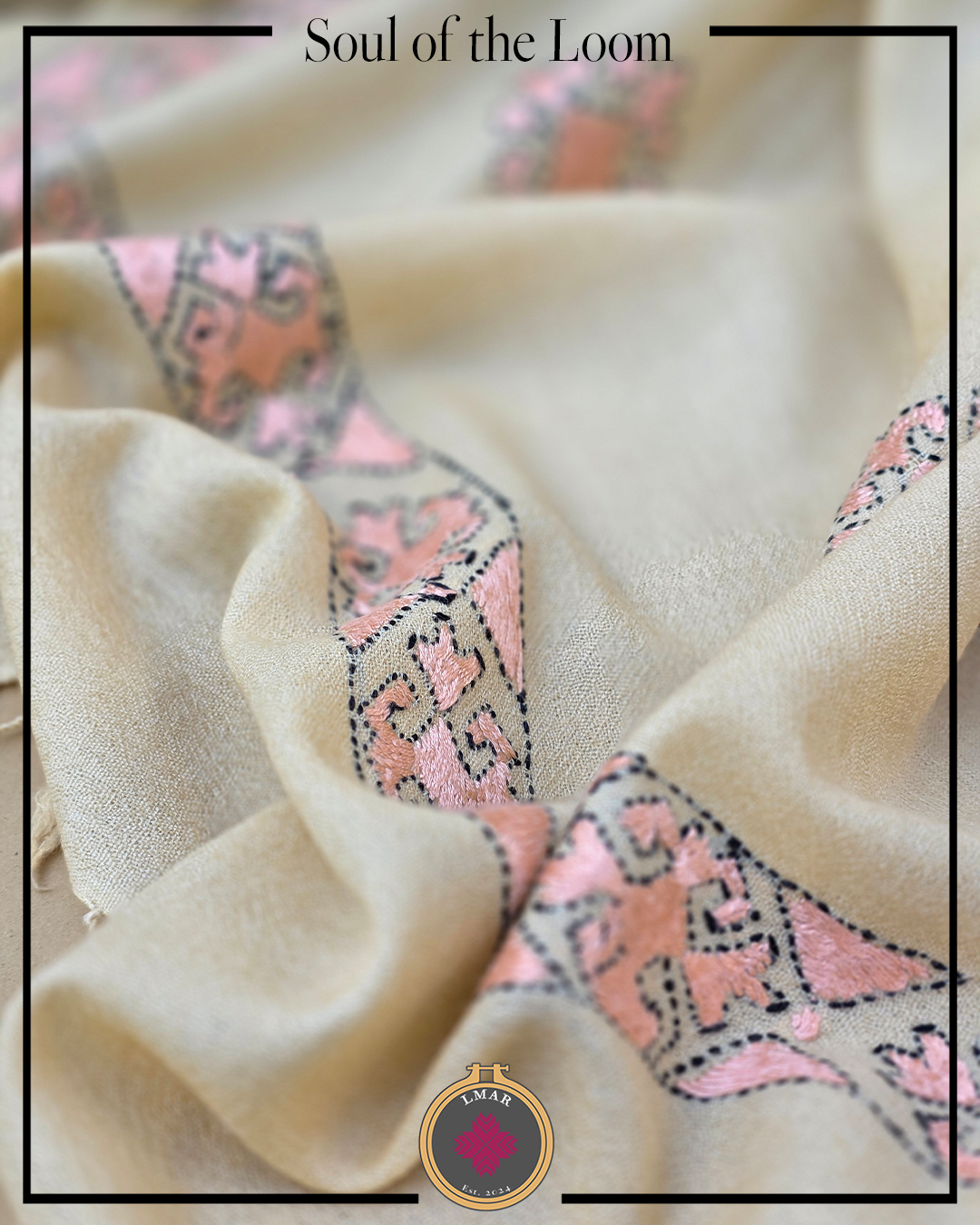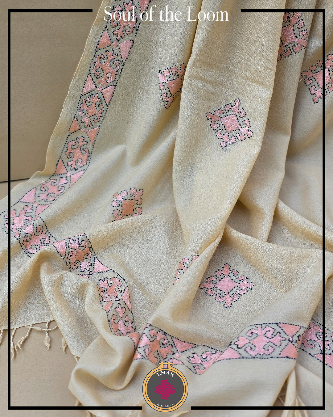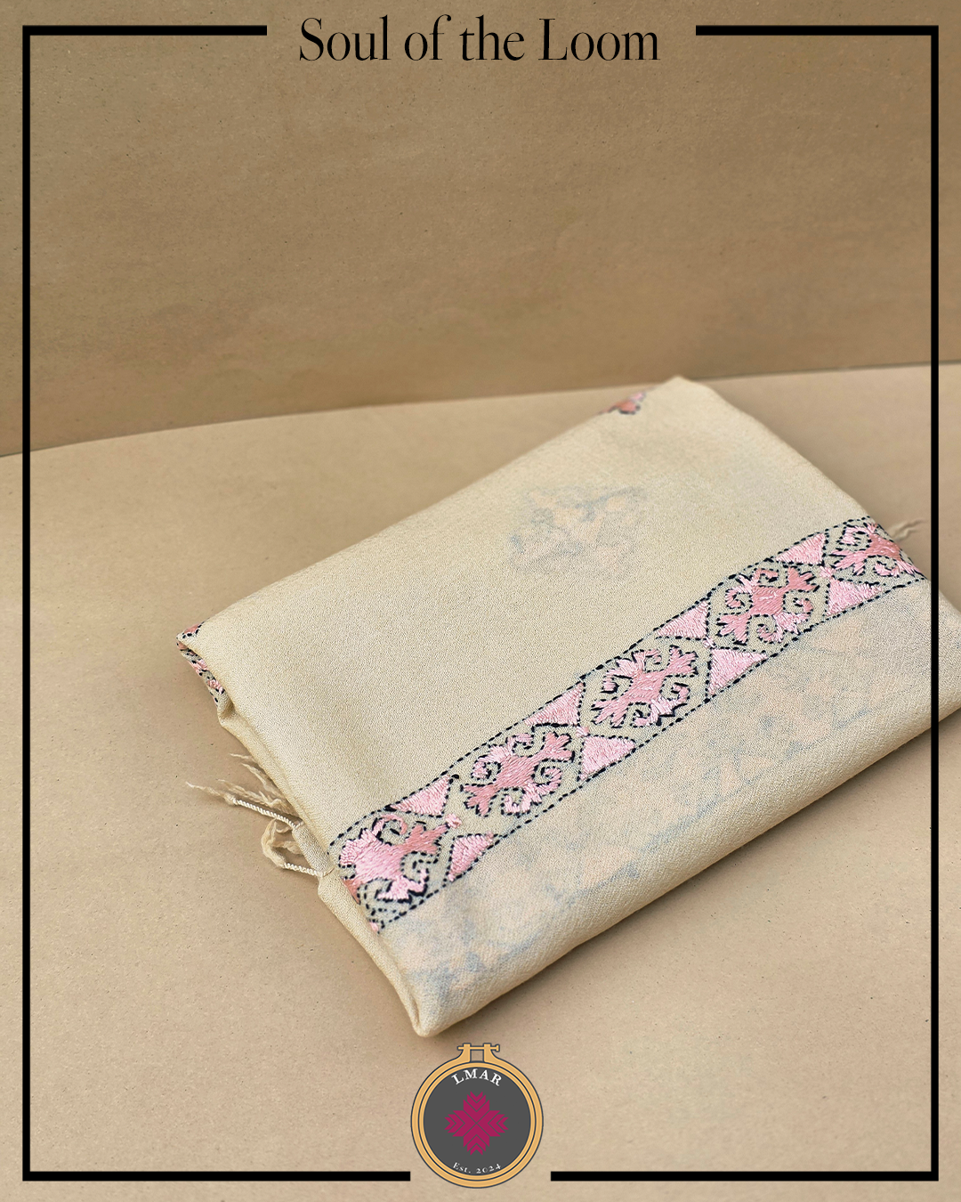 From Swat, Pakistan, this stunning hand-woven shawl features intricate hand embroidery, embodying the richness of traditional craftsmanship. Its soft, breathable material ensures comfort, while the luxurious embroidery makes it an ideal accessory for any wardrobe.