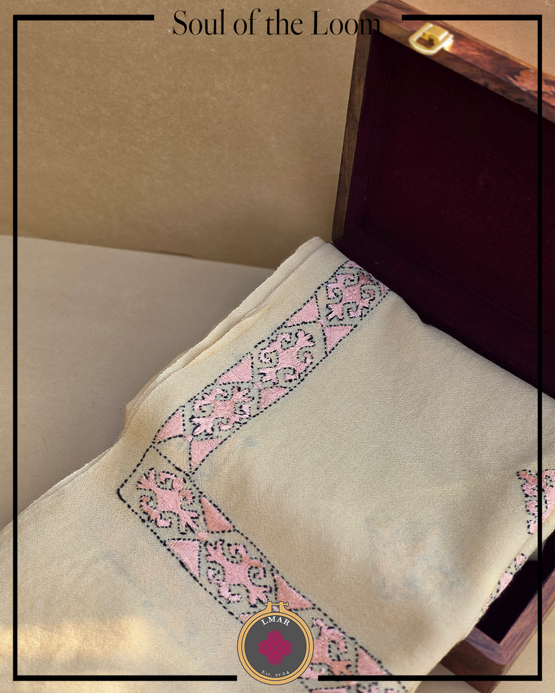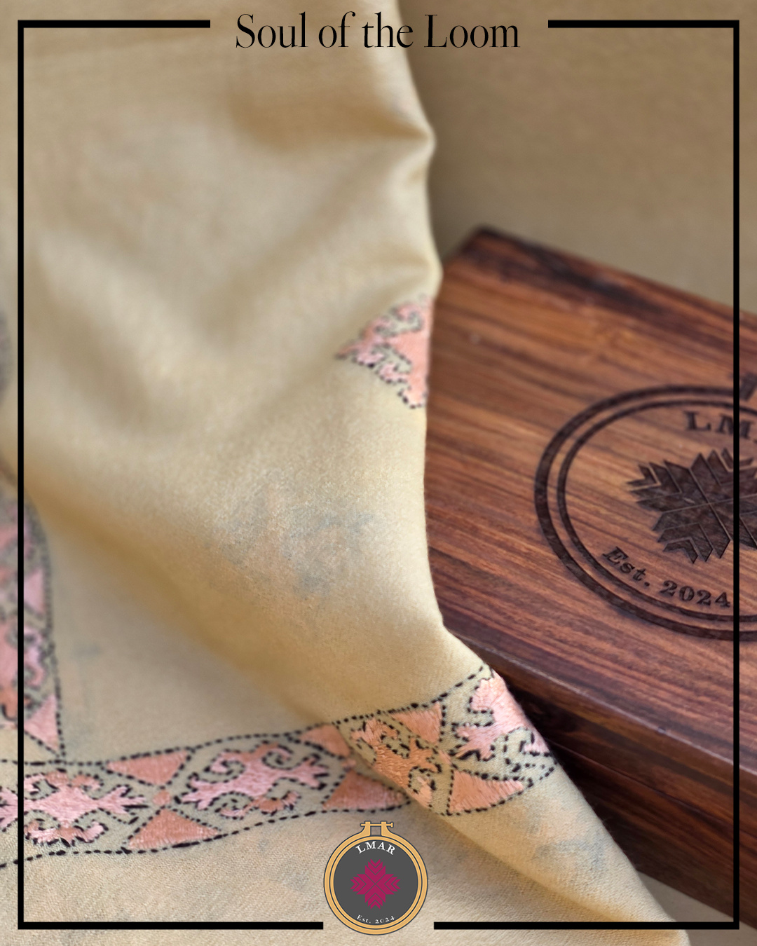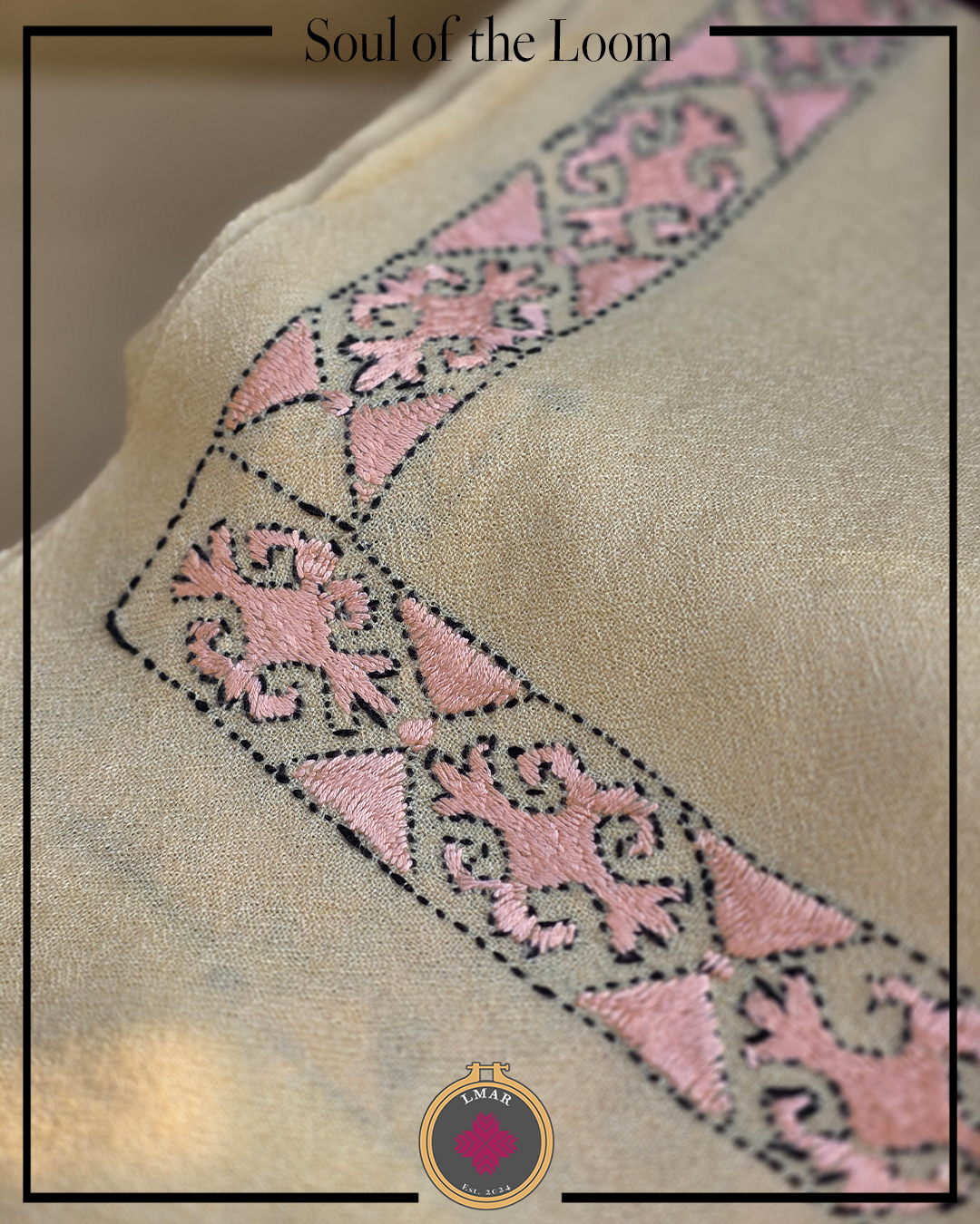 From Swat, Pakistan, this stunning hand-woven shawl features intricate hand embroidery, embodying the richness of traditional craftsmanship. Its soft, breathable material ensures comfort, while the luxurious embroidery makes it an ideal accessory for any wardrobe.