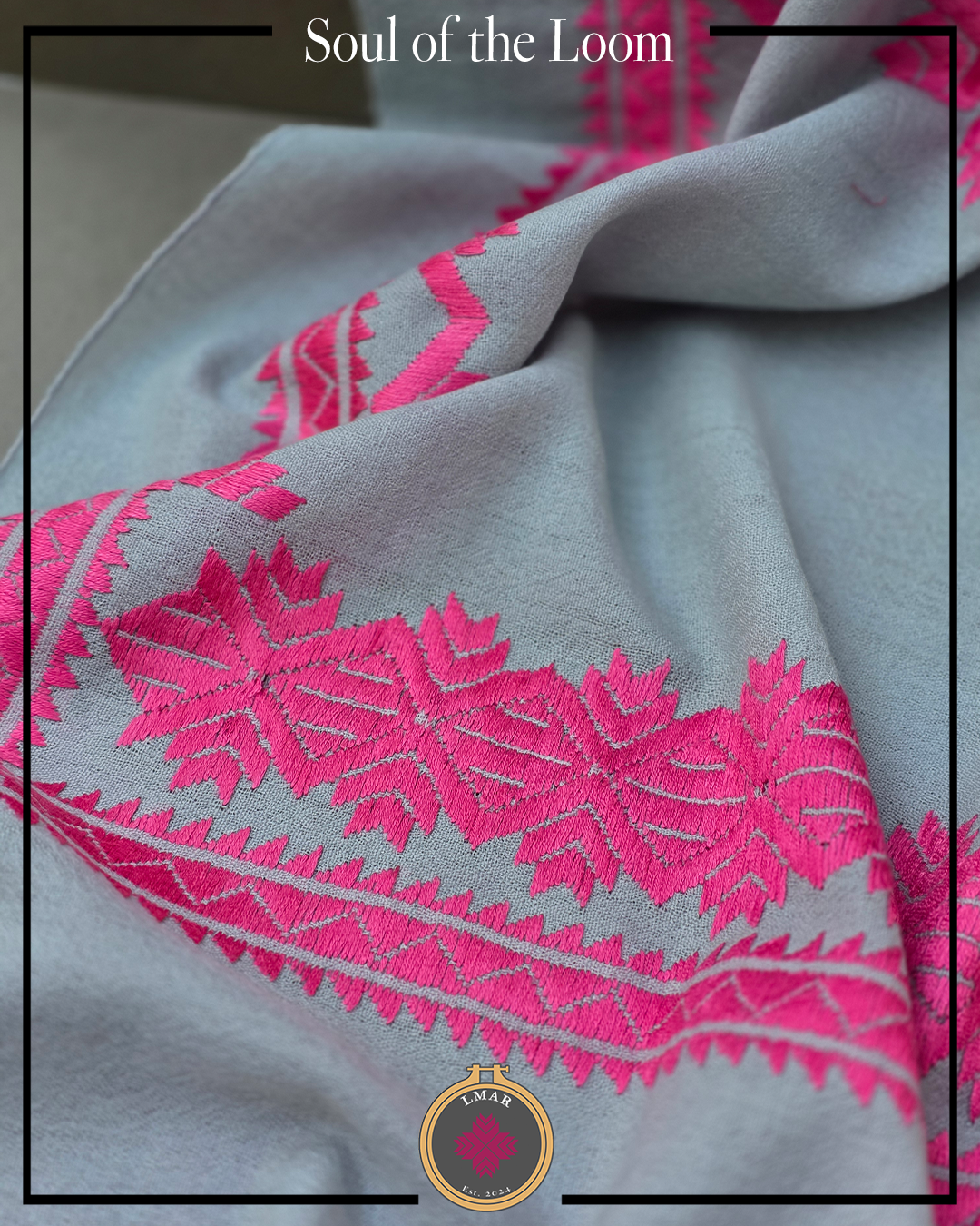 From Swat, Pakistan, this stunning hand-woven shawl features intricate hand embroidery, embodying the richness of traditional craftsmanship. Its soft, breathable material ensures comfort, while the luxurious embroidery makes it an ideal accessory for any wardrobe.