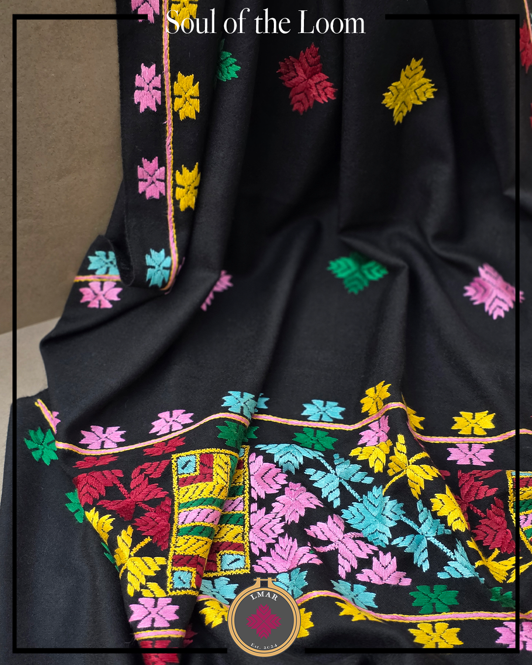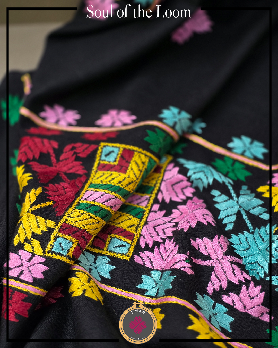 From Swat, Pakistan, this stunning hand-woven shawl features intricate hand embroidery, embodying the richness of traditional craftsmanship. Its soft, breathable material ensures comfort, while the luxurious embroidery makes it an ideal accessory for any wardrobe.