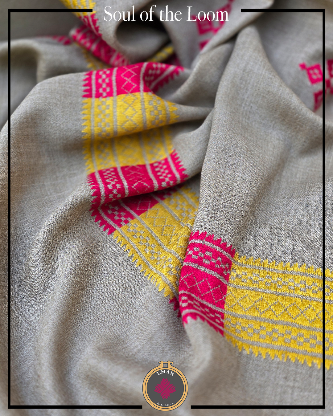 From Swat, Pakistan, this stunning hand-woven shawl features intricate hand embroidery, embodying the richness of traditional craftsmanship. Its soft, breathable material ensures comfort, while the luxurious embroidery makes it an ideal accessory for any wardrobe.
