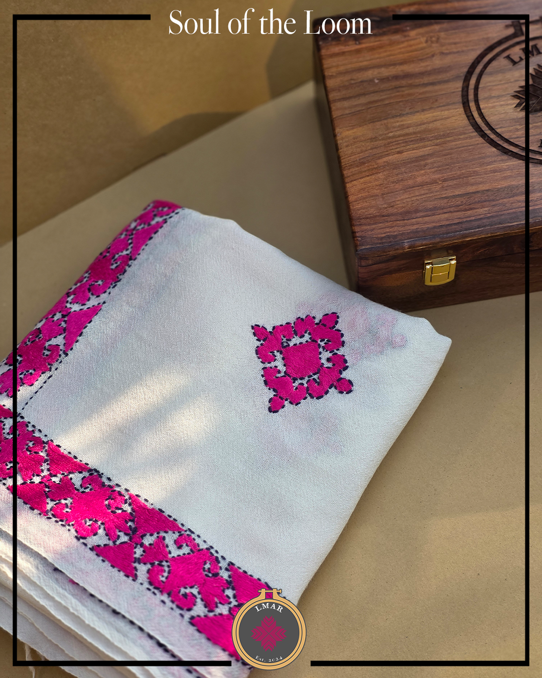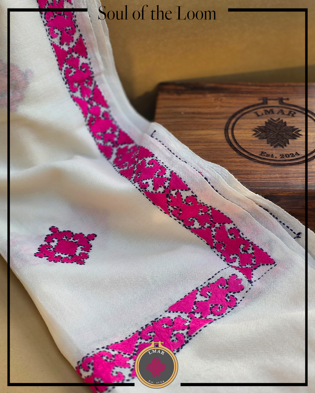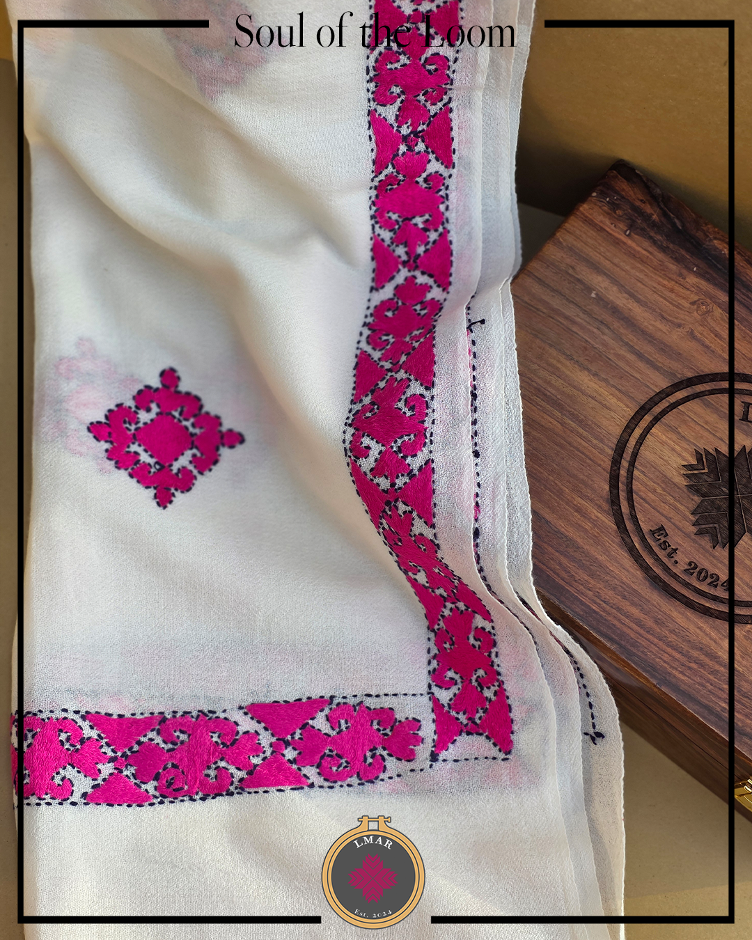 From Swat, Pakistan, this stunning hand-woven shawl features intricate hand embroidery, embodying the richness of traditional craftsmanship. Its soft, breathable material ensures comfort, while the luxurious embroidery makes it an ideal accessory for any wardrobe.