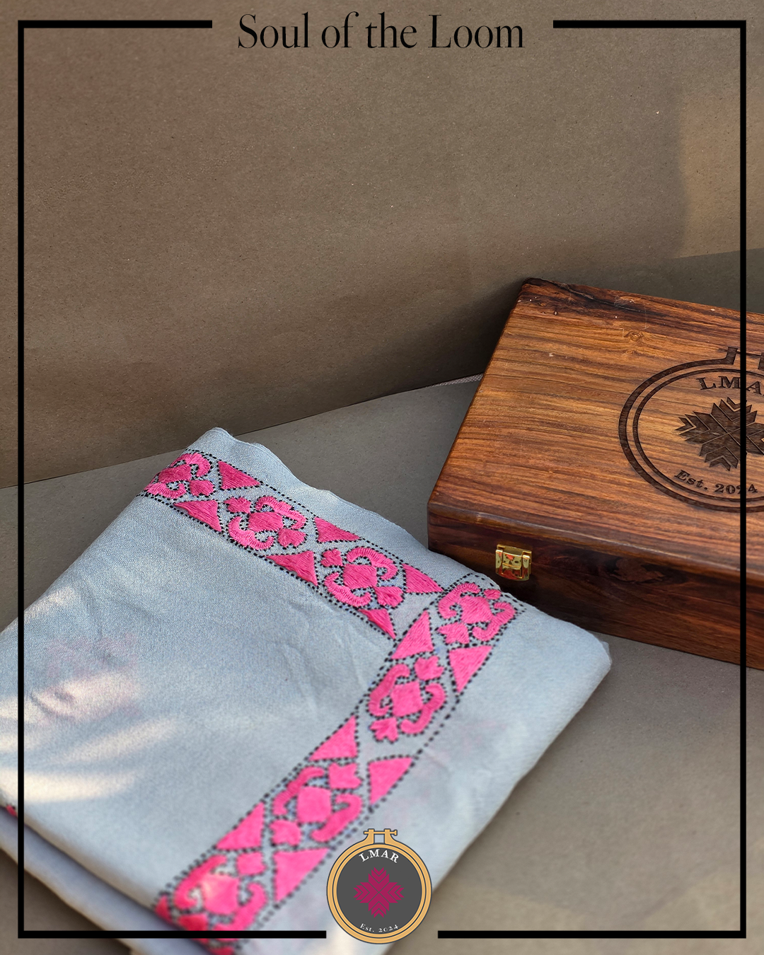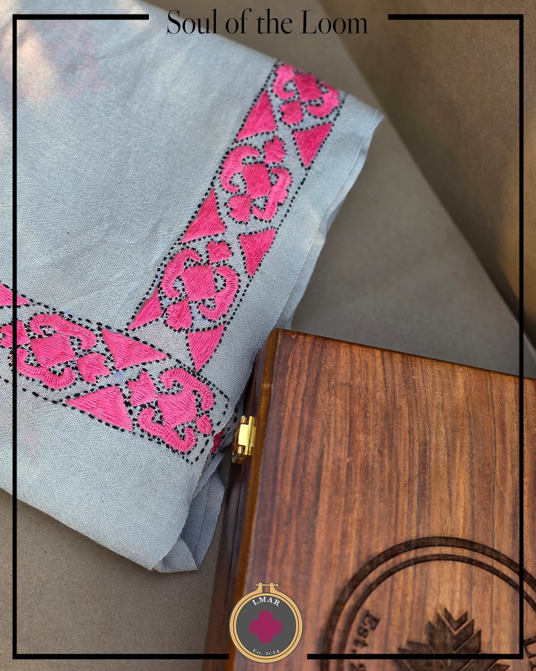 From Swat, Pakistan, this stunning hand-woven shawl features intricate hand embroidery, embodying the richness of traditional craftsmanship. Its soft, breathable material ensures comfort, while the luxurious embroidery makes it an ideal accessory for any wardrobe.