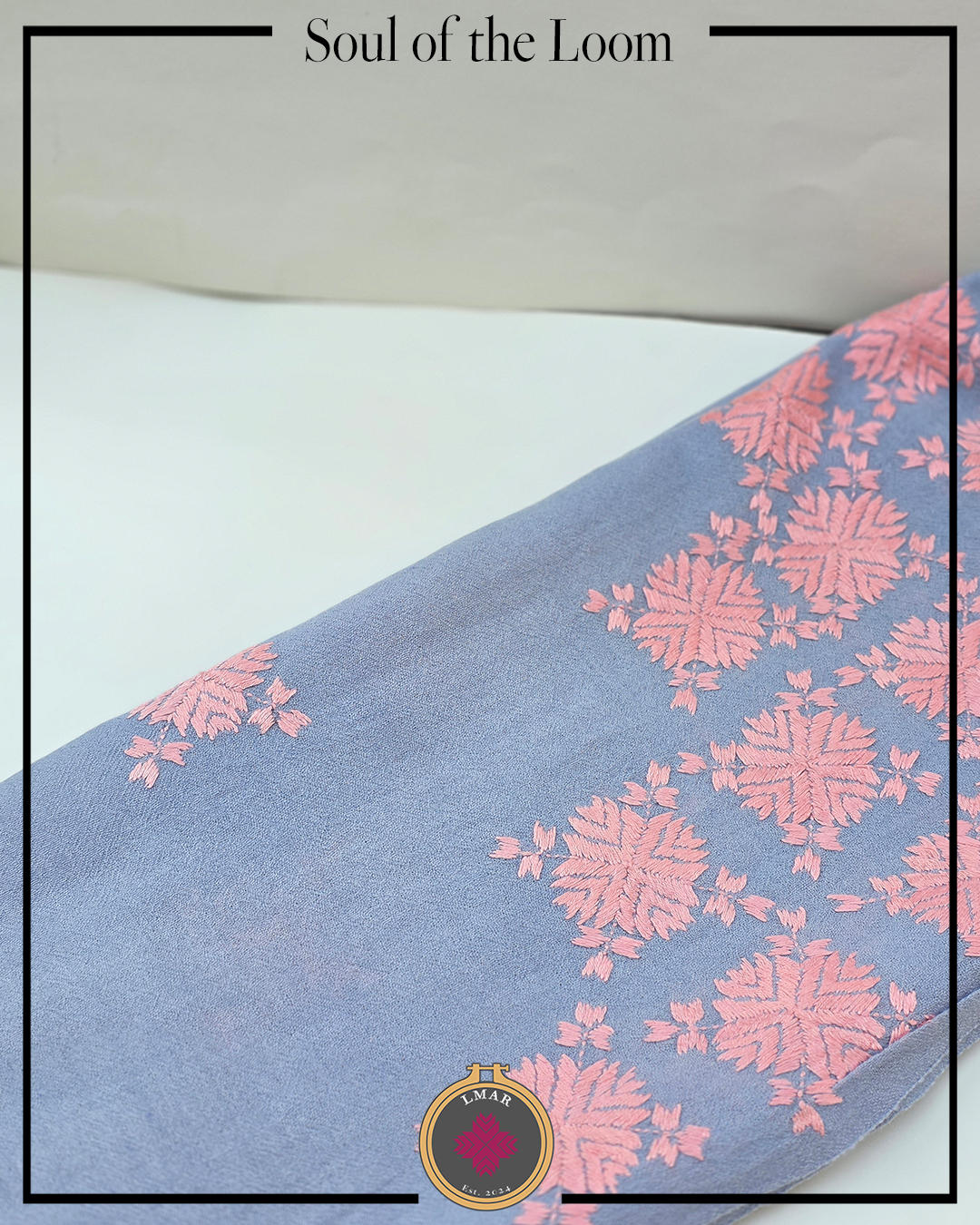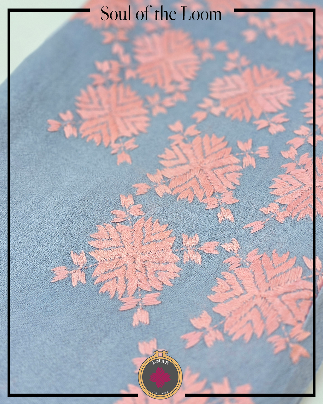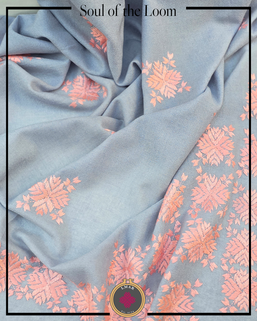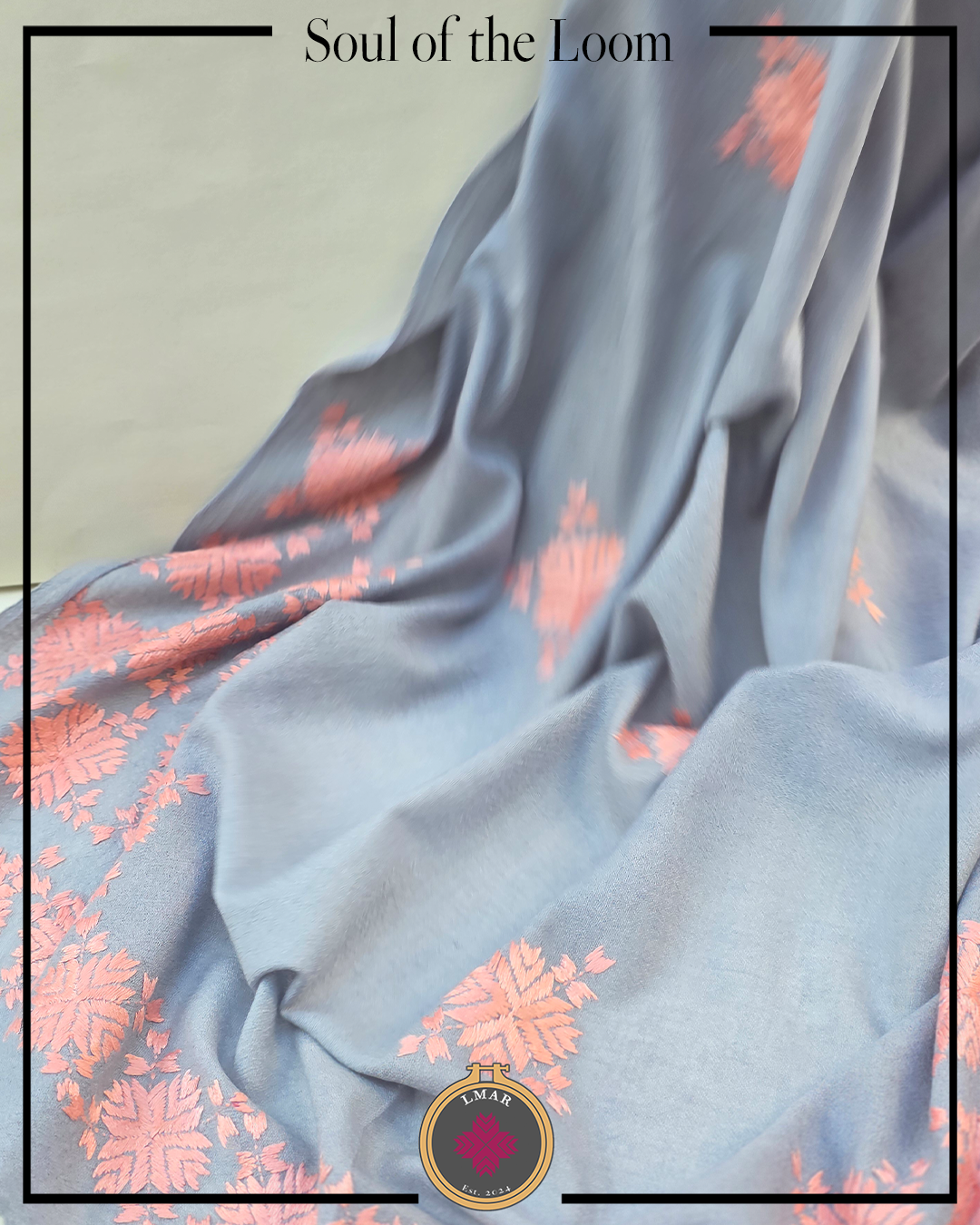 Colour: Bluish Grey Base Color with Peach Embroidery