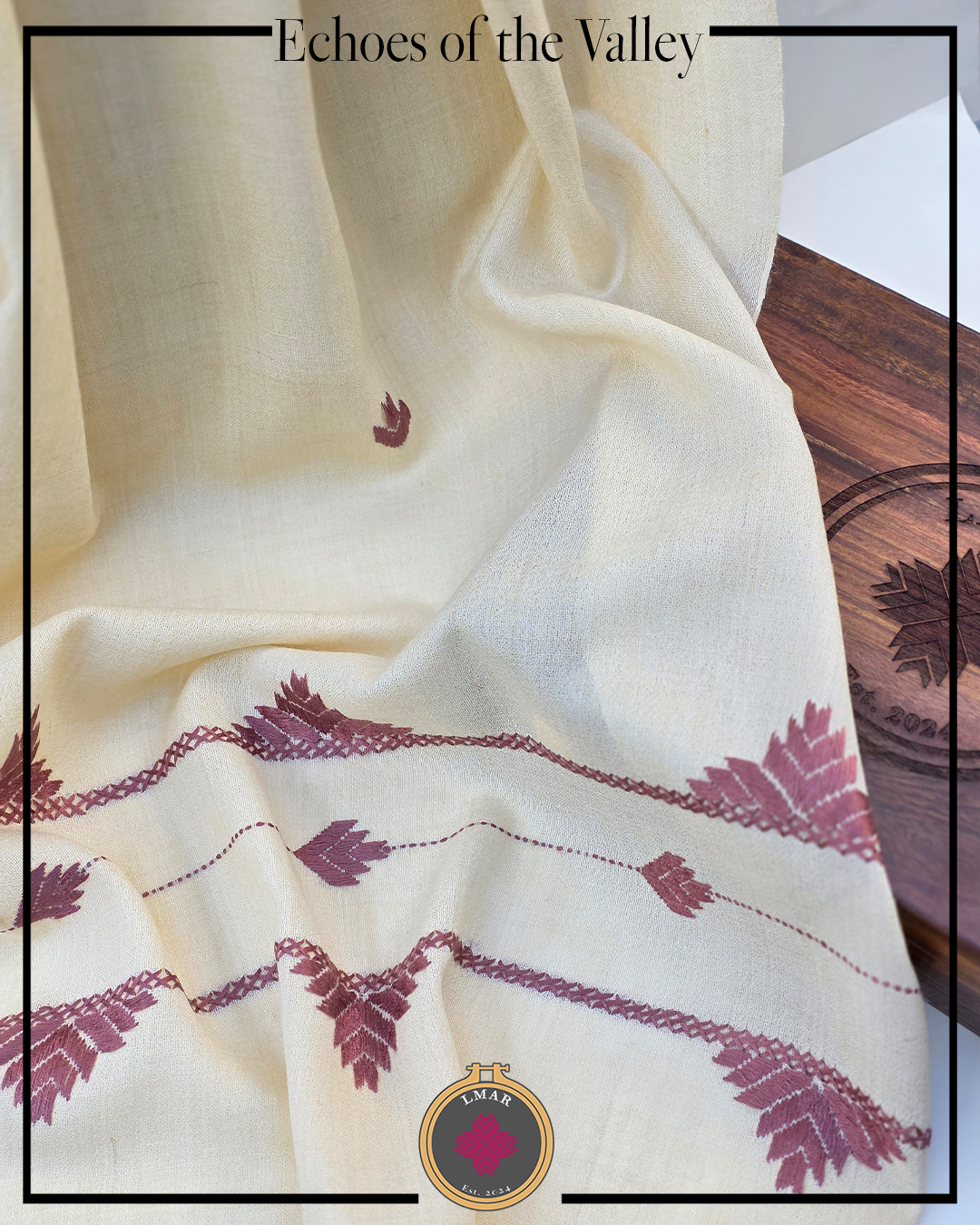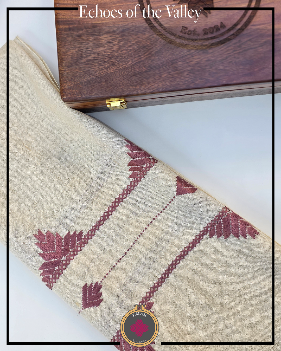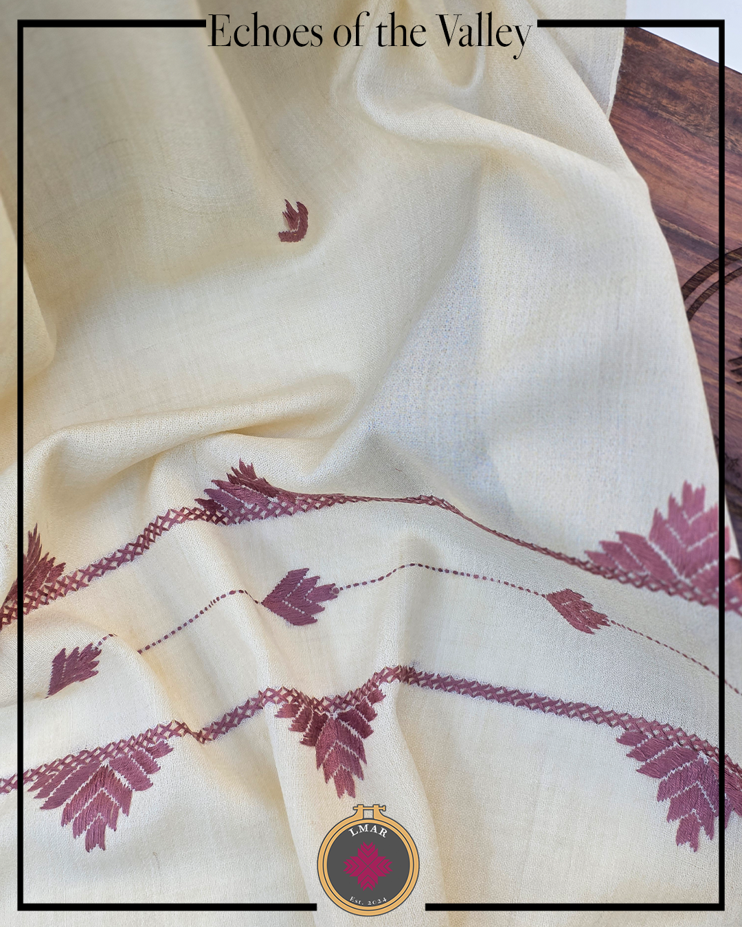 An exquisite example of traditional artistry, this hand-woven stole boasts intricate hand embroidery. The soft, breathable fabric is designed for both warmth and style, and the delicate embroidery adds a layer of elegance that makes this piece the perfect finishing touch to any outfit.