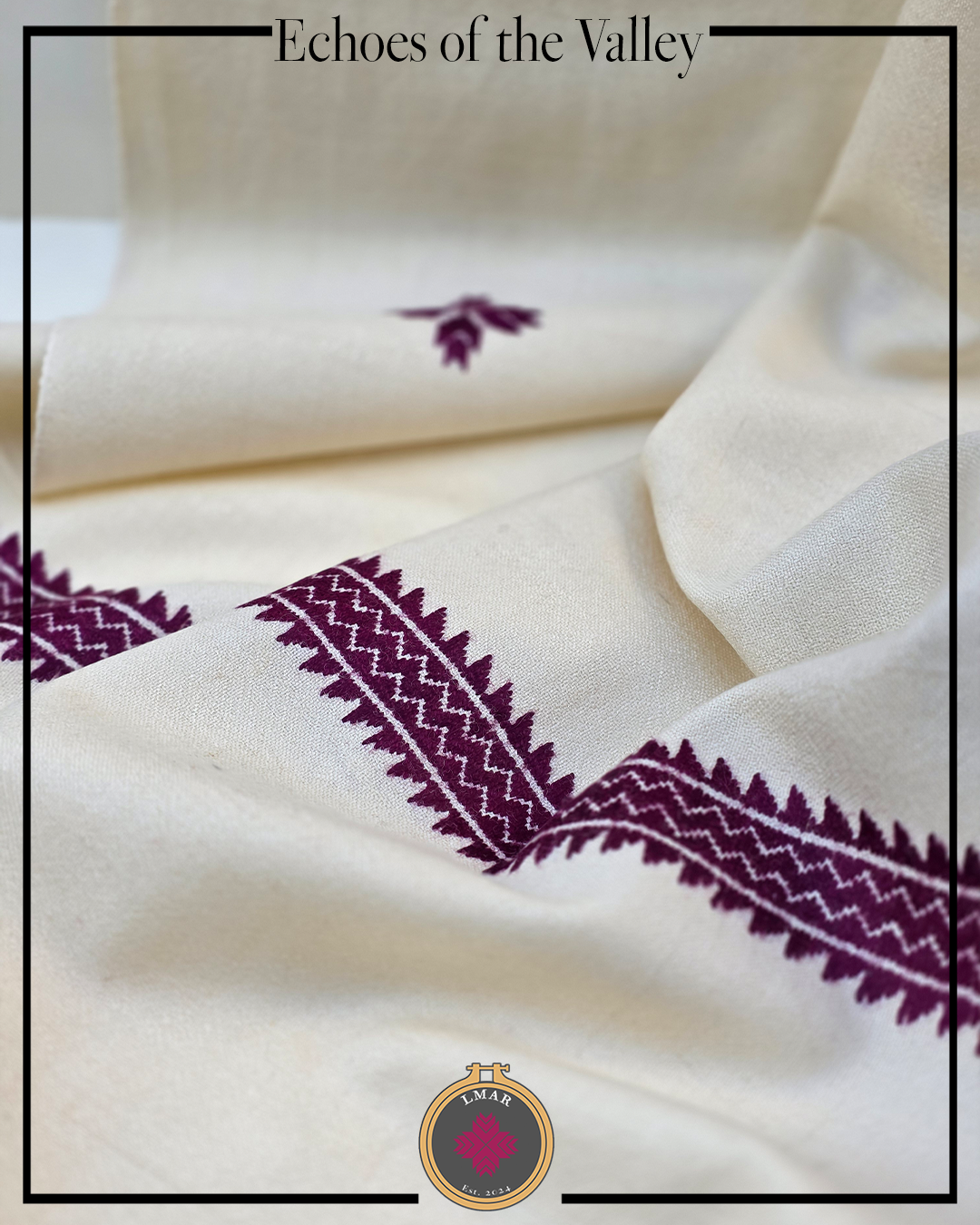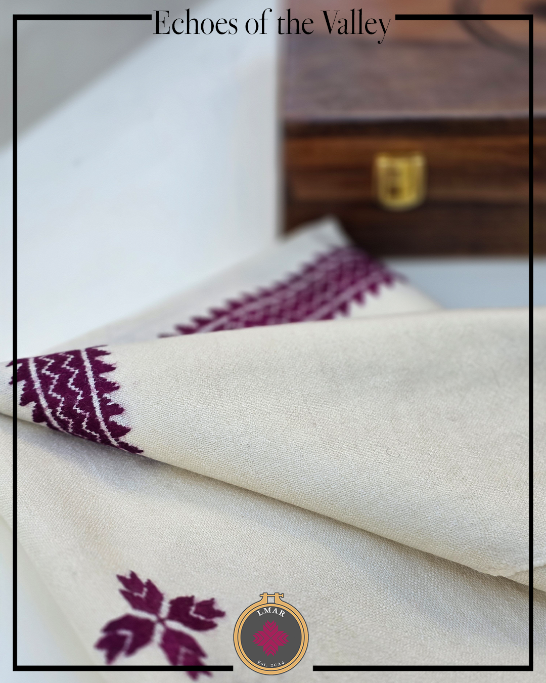 An exquisite example of traditional artistry, this hand-woven stole boasts intricate hand embroidery. The soft, breathable fabric is designed for both warmth and style, and the delicate embroidery adds a layer of elegance that makes this piece the perfect finishing touch to any outfit.