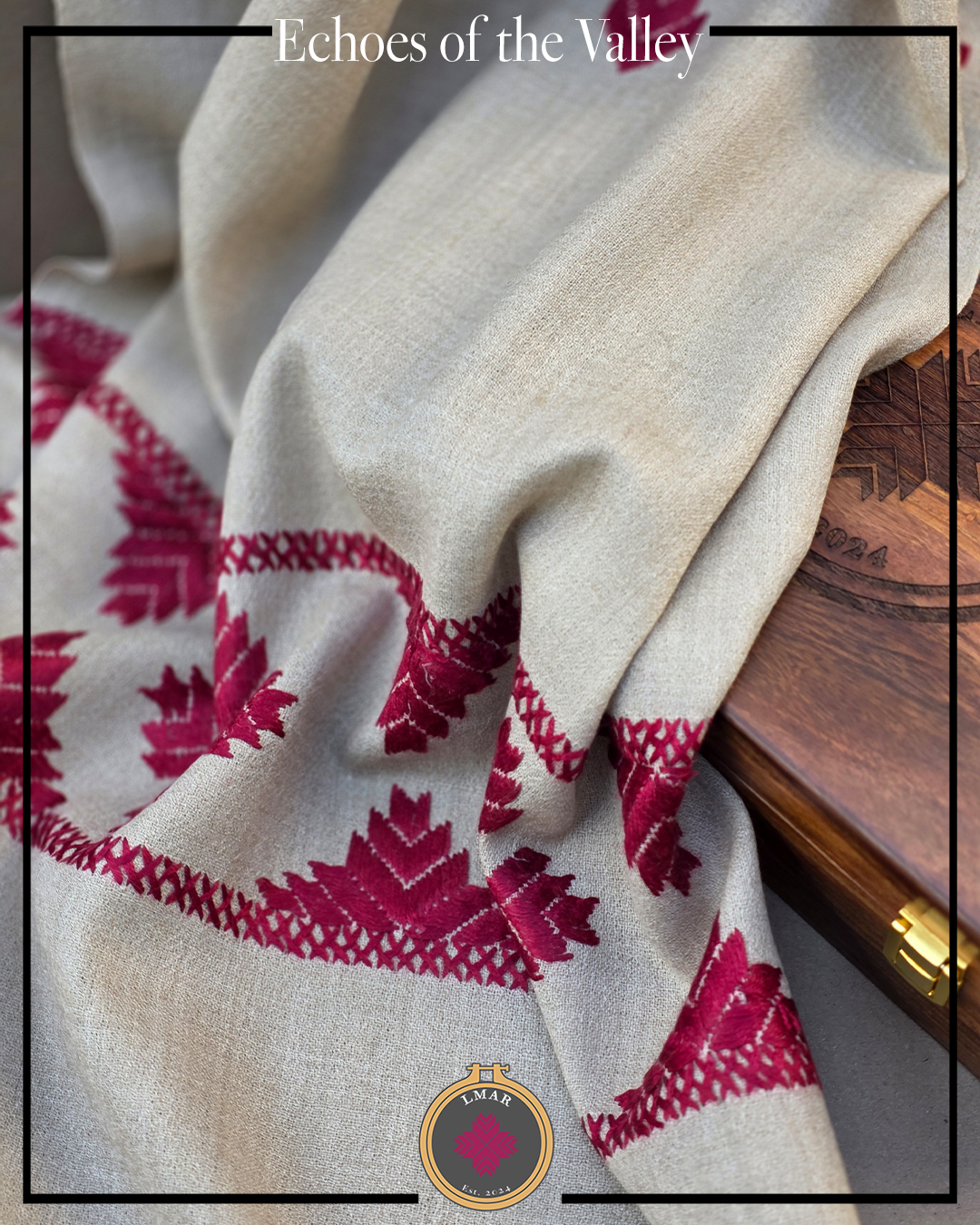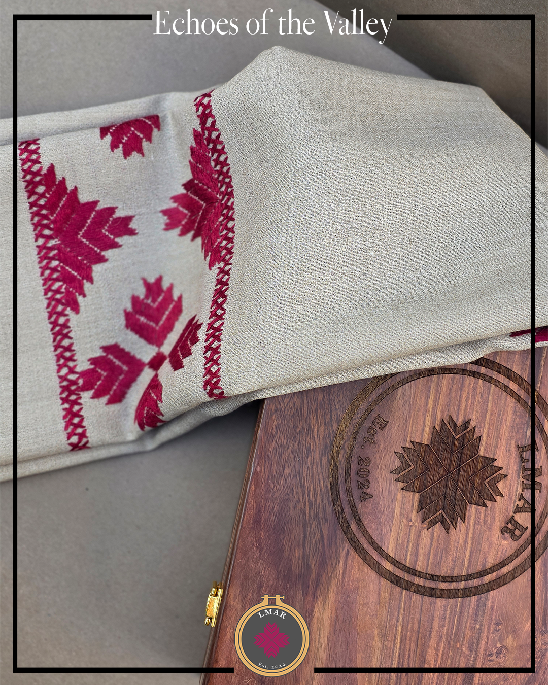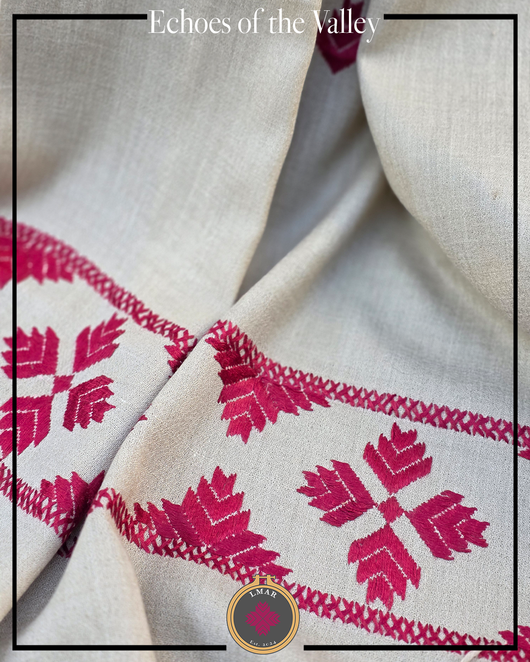 An exquisite example of traditional artistry, this hand-woven stole boasts intricate hand embroidery. The soft, breathable fabric is designed for both warmth and style, and the delicate embroidery adds a layer of elegance that makes this piece the perfect finishing touch to any outfit.
