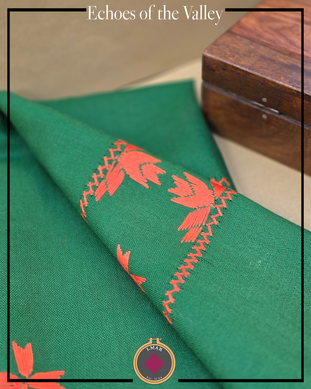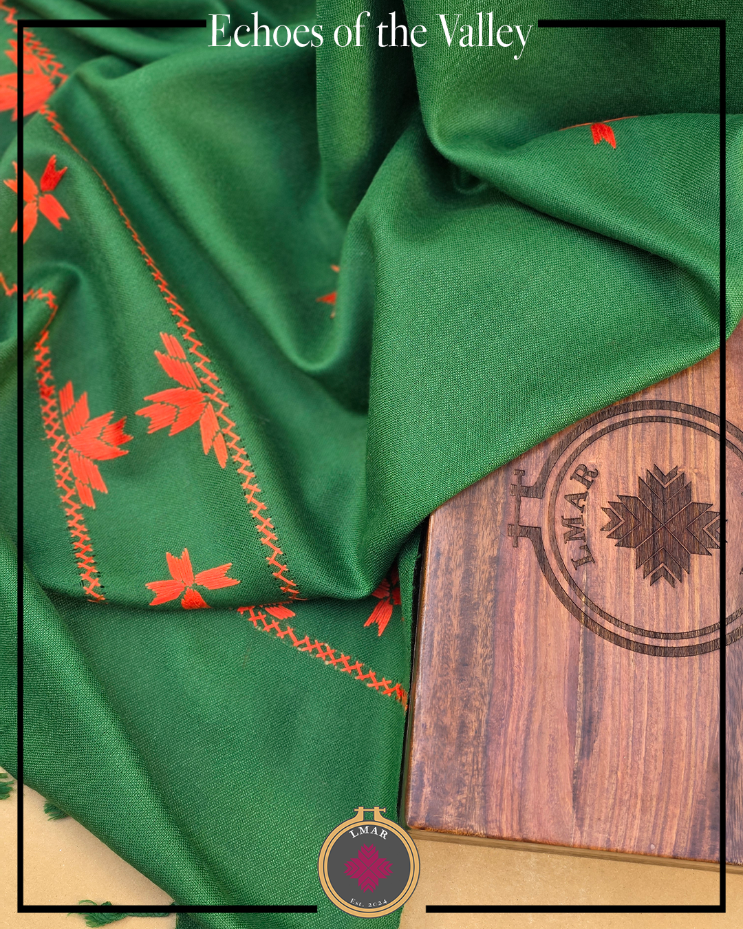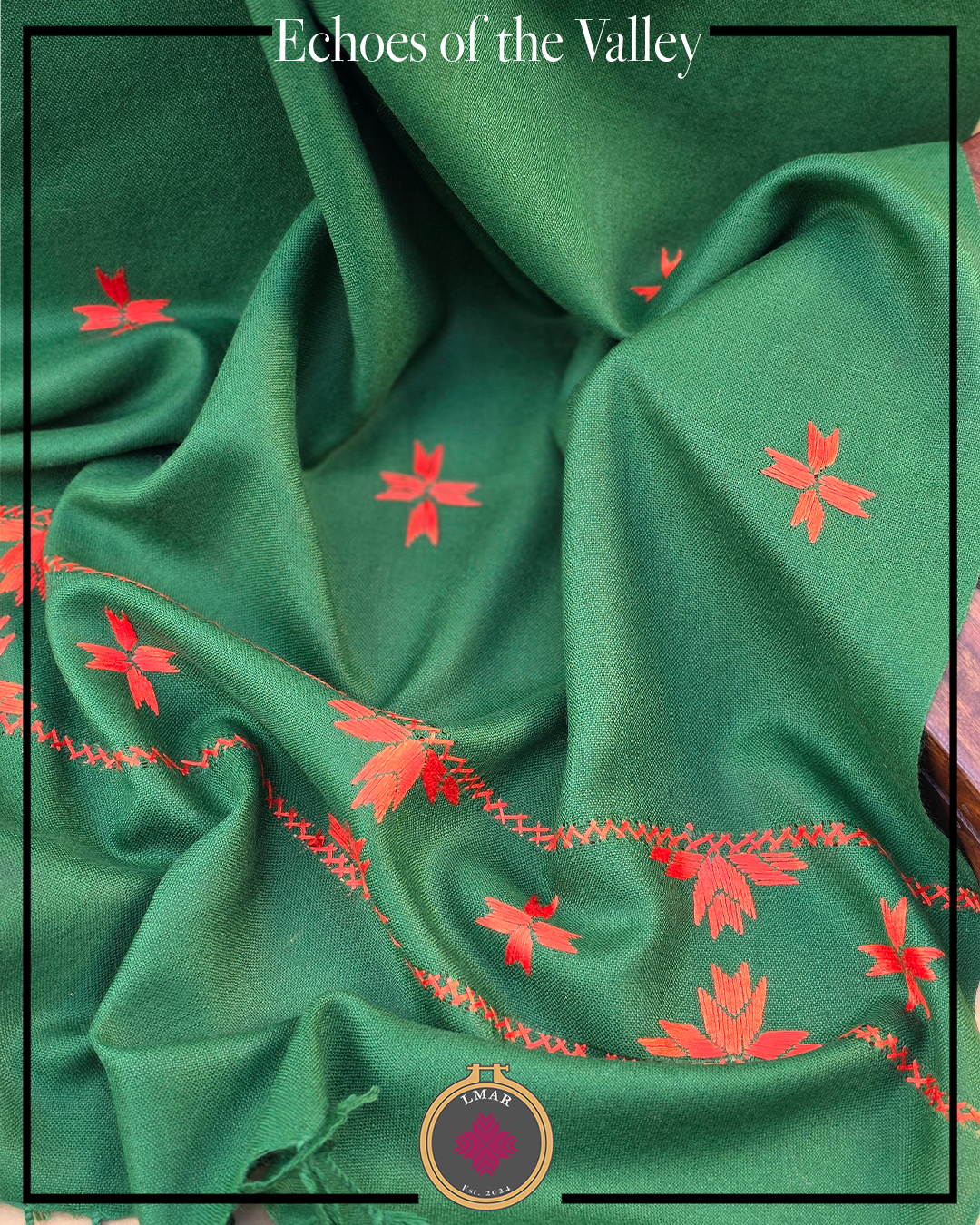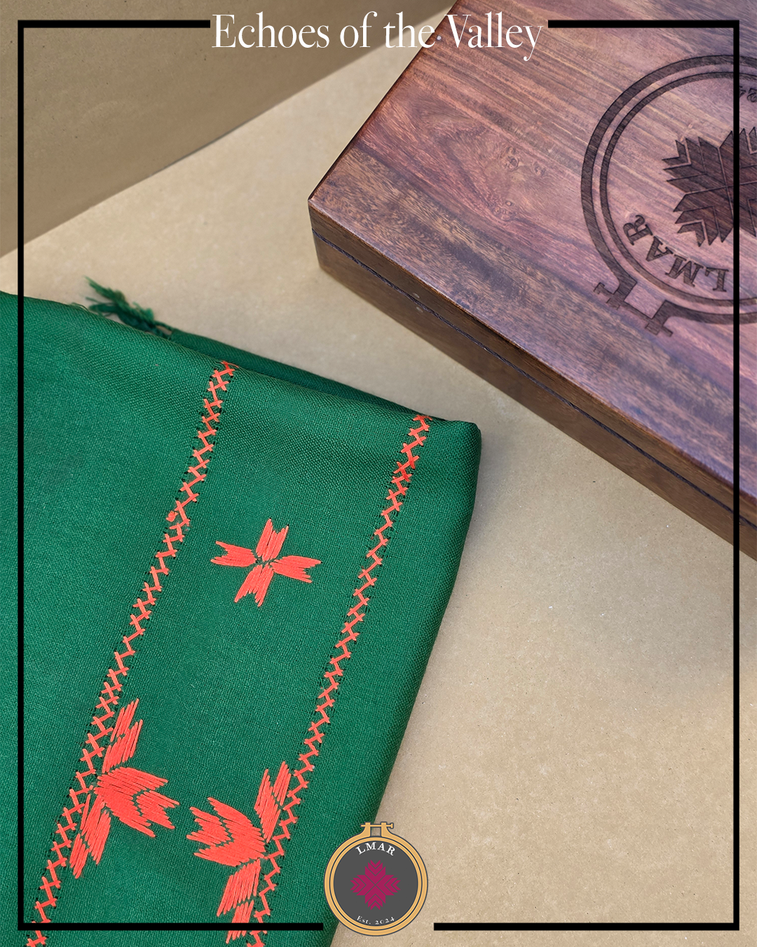 An exquisite example of traditional artistry, this hand-woven stole boasts intricate hand embroidery. The soft, breathable fabric is designed for both warmth and style, and the delicate embroidery adds a layer of elegance that makes this piece the perfect finishing touch to any outfit.