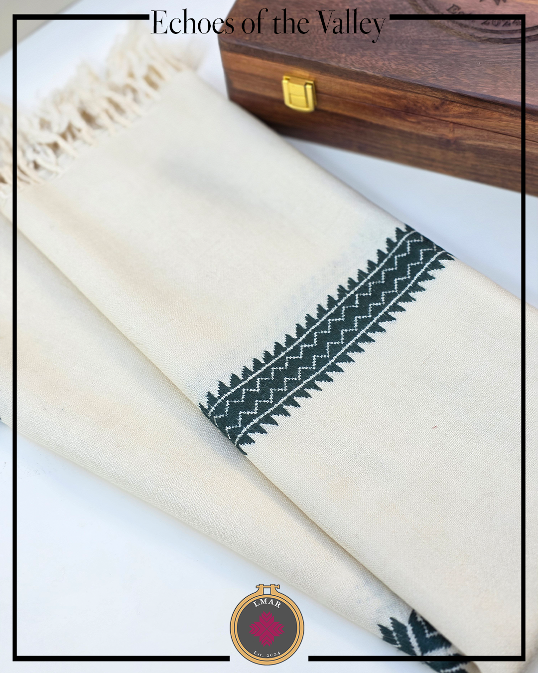 An exquisite example of traditional artistry, this hand-woven stole boasts intricate hand embroidery. The soft, breathable fabric is designed for both warmth and style, and the delicate embroidery adds a layer of elegance that makes this piece the perfect finishing touch to any outfit.
